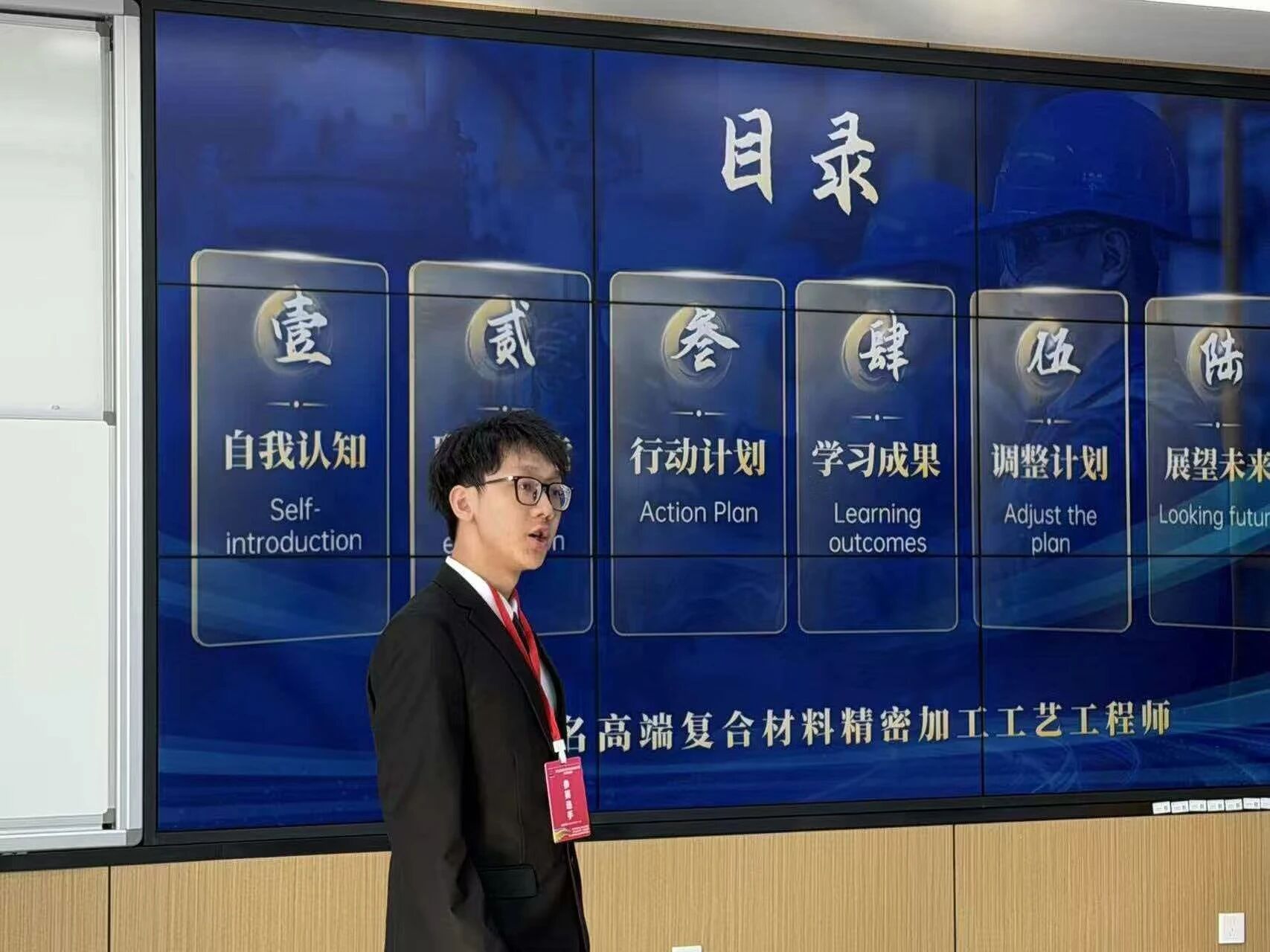 付钊同学以《机动未来 械动人生》为主题。在成长赛道的展示中,他系统梳理了自身专业基础、优势特长与发展定位,完整呈现了清晰合理的自我认知、切实可行的阶段行动计划以及高远务实的未来展望。他凭借扎实的专业积累、严谨的工程素养与真挚诚恳的赛场表现,充分展现了青年学子精益求精、追求卓越的工匠精神,用专业实力与真诚态度打动了现场评委。
